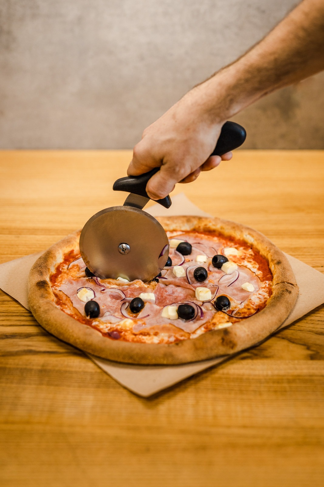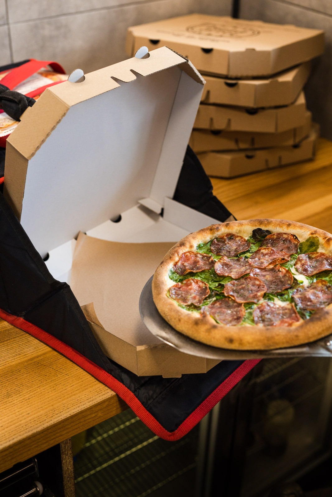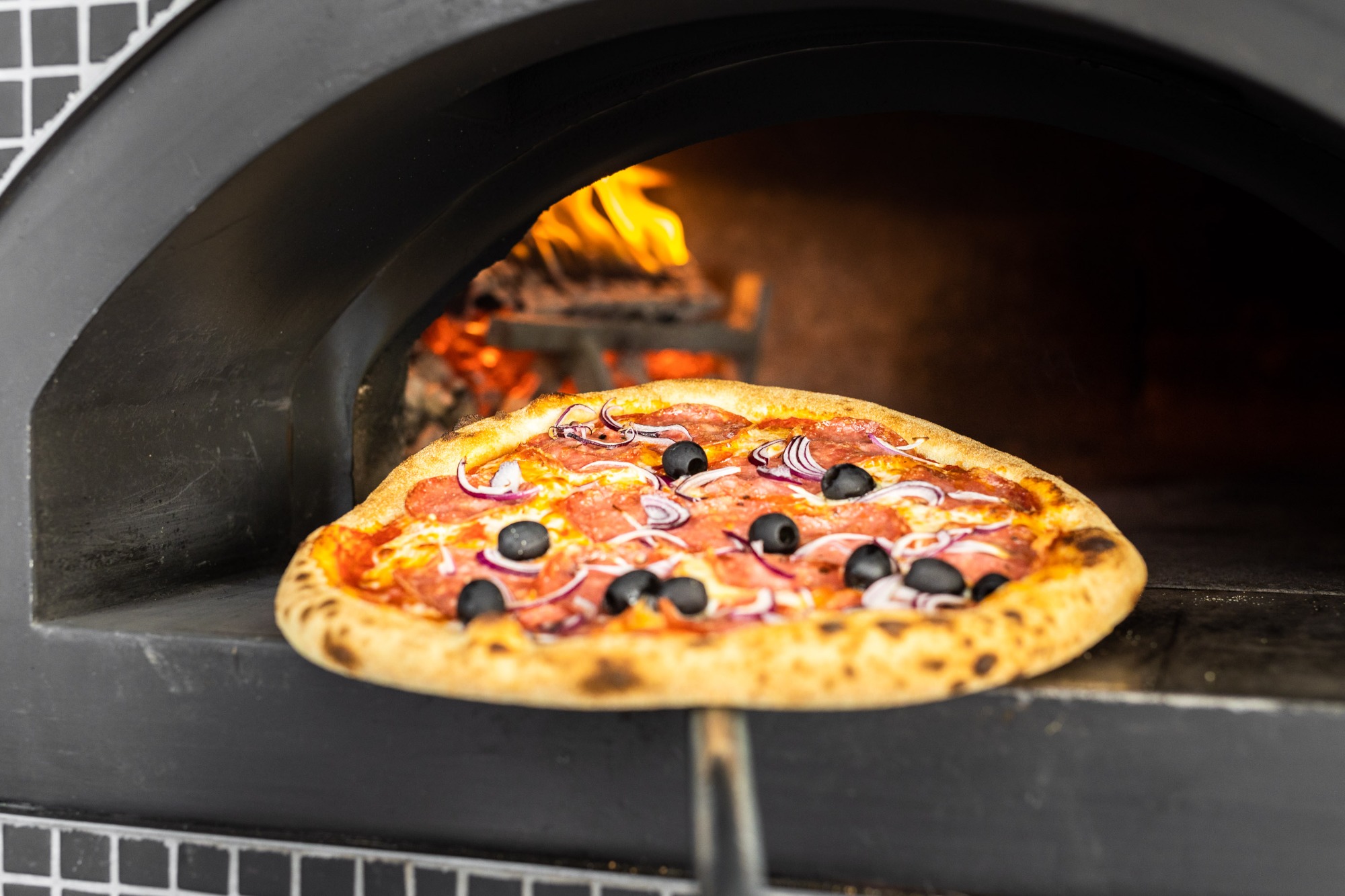 Sos pomidorowy , Mozzarella, Boczek, Kurczak, Papryczki jalapeno, Cebula czerwona