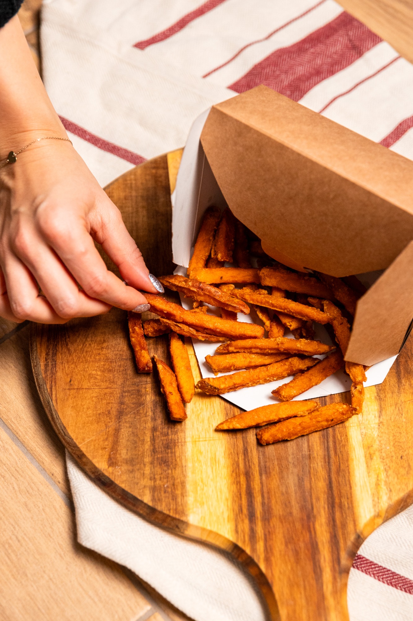 Do podstawowej porcji frytek do wyboru keczup lub majonez, możliwość wyboru sosu serowego lub serowego z jalapeno